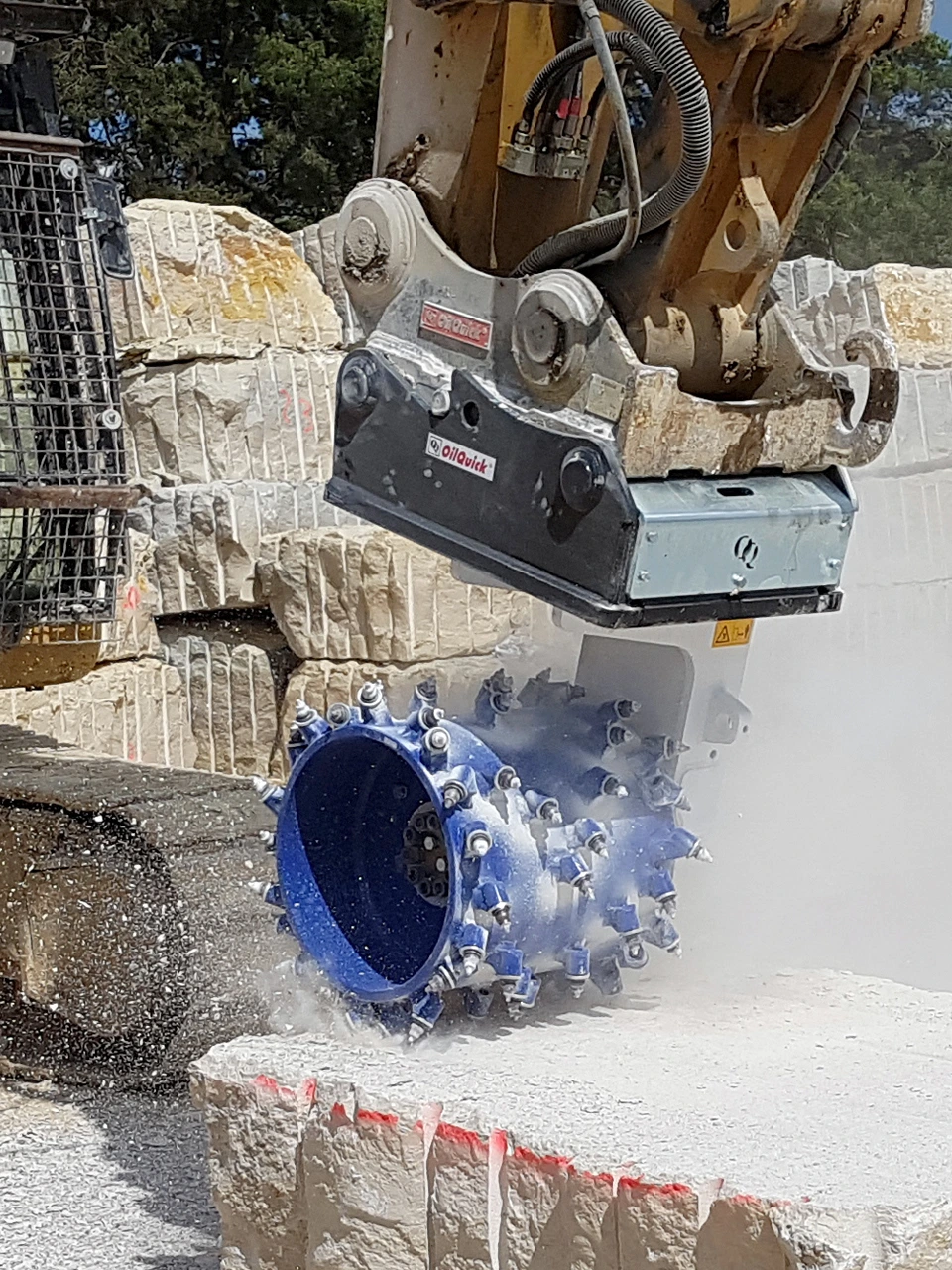 Fraise hydraulique DEXROC montée sur pelle excavatrice