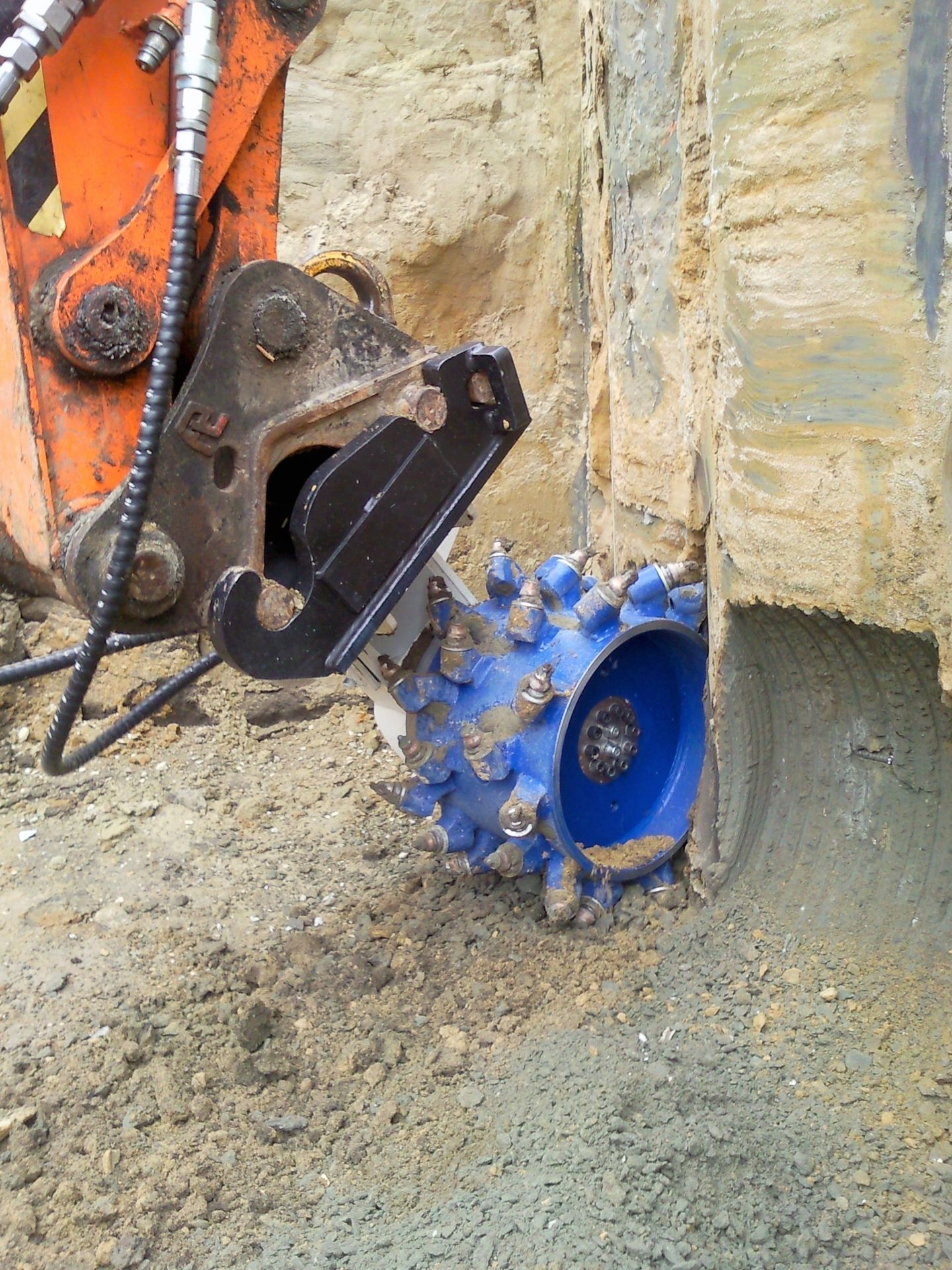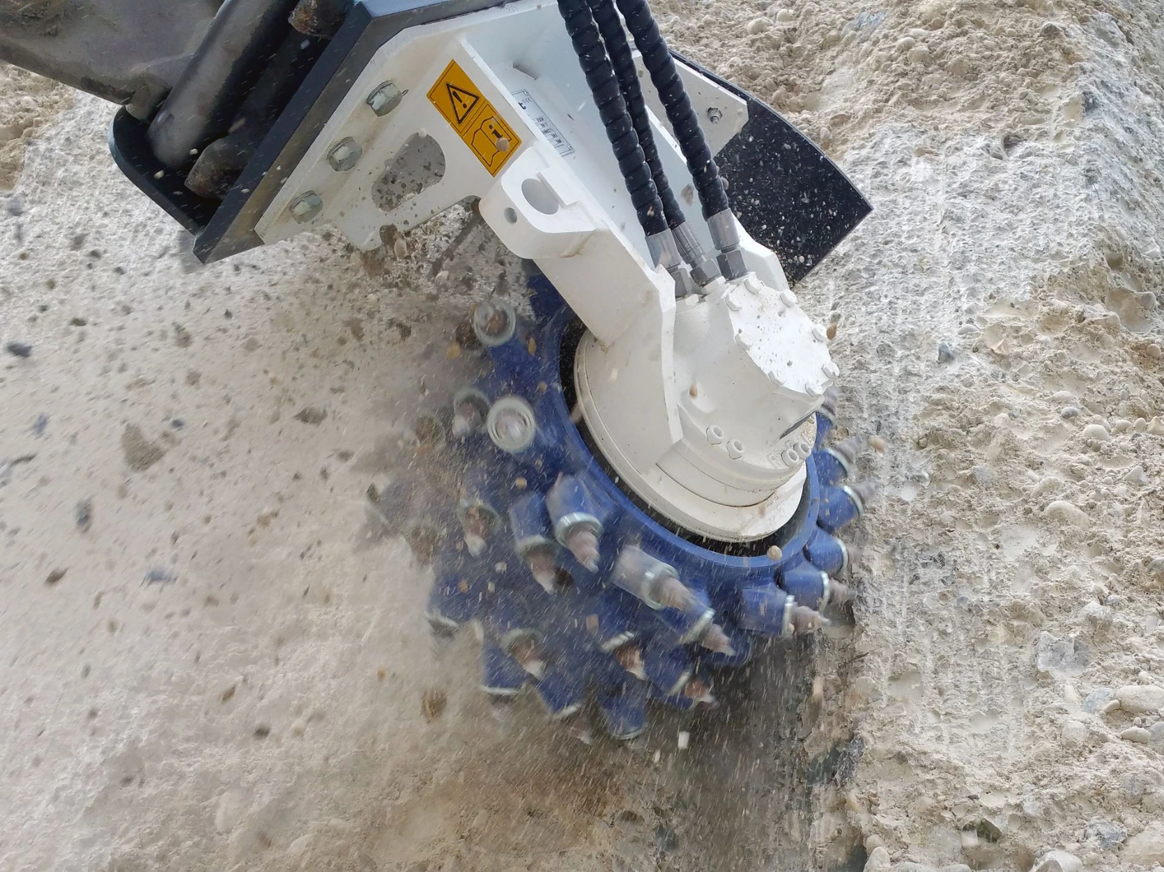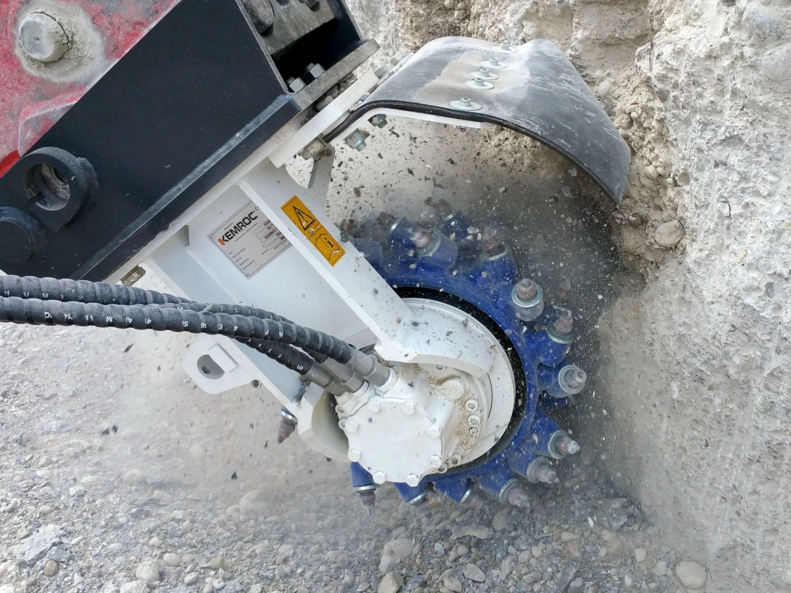 Fraise hydraulique pour tranchée en roche sur pelle hydraulique