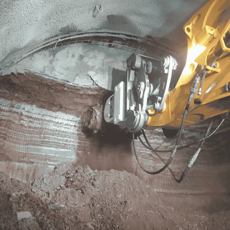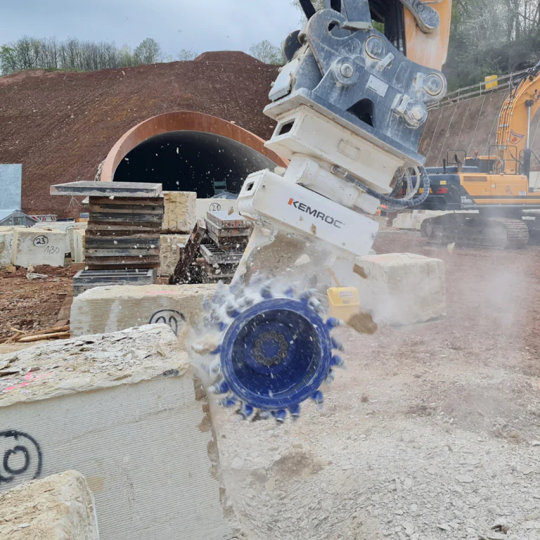 Les têtes de coupe KEMROC ES sont également idéales pour le fraisage du béton projeté dans les tunnels, garantissant des surfaces lisses et régulières pour une exploitation sûre et efficace.