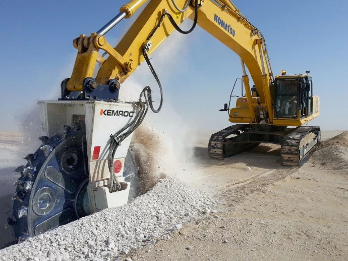 Les accessoires KEMROC — notamment les roues de coupe DMW, les fraises à chaîne EK, les fraises à tambour, ainsi que les fraises Bullhead KRC — établissent la référence en matière de précision, de rentabilité et de productivité pour une large gamme d’applications de trenching.